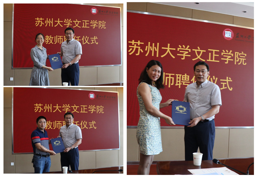 6月21日下午,学院自有教师(苏大借用)聘任仪式在综合楼会议室举行,共有十五位苏州大学教师以“双聘”方式加入文正大家庭。苏州大学人事处副处长何德超作为嘉宾出席本次聘任仪式。文正学院领导班子、各职能部门负责人、相关系主任以及本次受聘的自有教师共同参加仪式。