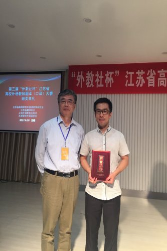 本届口译大赛由江苏省翻译协会、江苏省高校外语教学研究会和上海外语教育出版社联合主办。大赛分为本科组和高职组两个组别,包括复赛和决赛两个环节。经过复赛的英汉口译,各组别分别产生6名选手入围决赛。决赛为汉英口译,通过角逐最终产生各奖项获奖人员。在复赛中,我院杨田田老师凭借扎实功底顺利晋级决赛。在决赛的汉译英环节中,杨田田老师凭借快速的反应和出色的双语转换能力,最终以决赛第二名、总评并列第三名的成绩获得了二等奖。我院外语系大学外语负责人朱全明老师十分重视和关心本部门青年教师的成长,尤其是教师本身技能素质的持续提升。为进一步提高参赛选手的表现,朱全明老师在赛前对杨田田老师进行了精心的指导和培训。