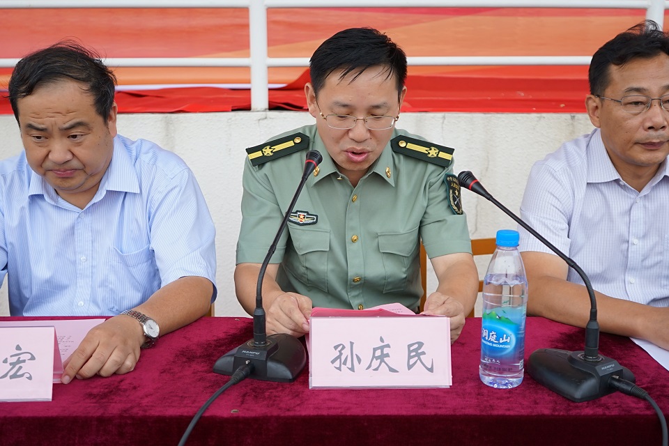 孙庆民在动员讲话中对全体承训官兵表示慰问,并对2017级学生提出殷切希望。他希望全体参训学生除了以积极饱满的斗志参加军事技能训练外,更要树立安全第一的观念,提高自身安全保护意识。他还希望军训教官能够做到言传身教、科学训练,让这次军训能更好地体现出大学生军训对于国防教育的重要意义。