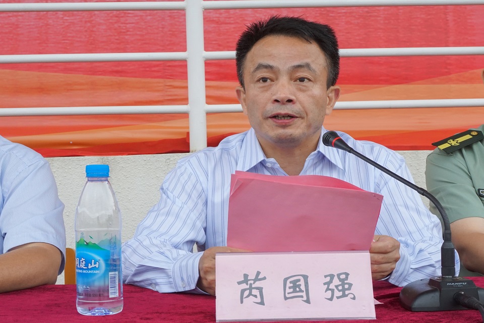 芮国强向承训教官表达了诚挚的感谢和崇高敬意,向认真参加本次军训的同学表示亲切慰问,希望同学们在今后的学习和生活中,互相帮助、团结友爱,以勇往直前的精神迎接未来。