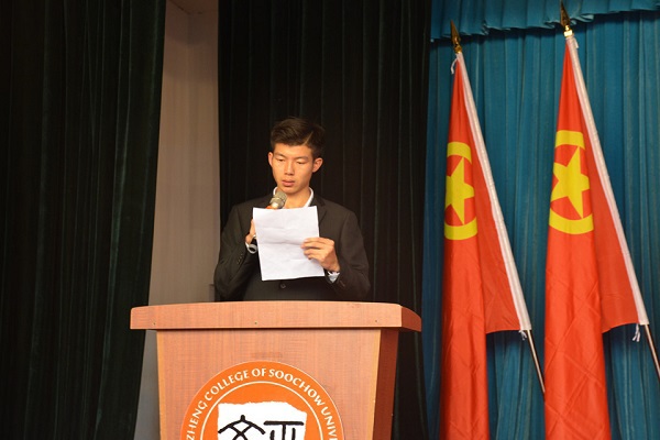 (鲁睿航/文 钟鑫媛/图)10月27日晚6:00,由我院团委举办的第十七期团校培训开班典礼暨第一次讲座于学术报告厅顺利举行。苏州大学团委副书记朱今,苏州大学马克思主义学院教授、硕士生导师朱蓉蓉,院学生处副处长、团委书记祁素萍,团委副书记何玉,团校部指导老师迮宇出席本次活动。全院各学生组织的大一干事、2017级各班班长和团支书参加本次培训。