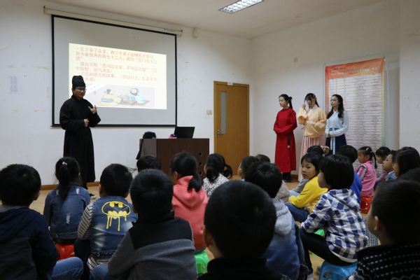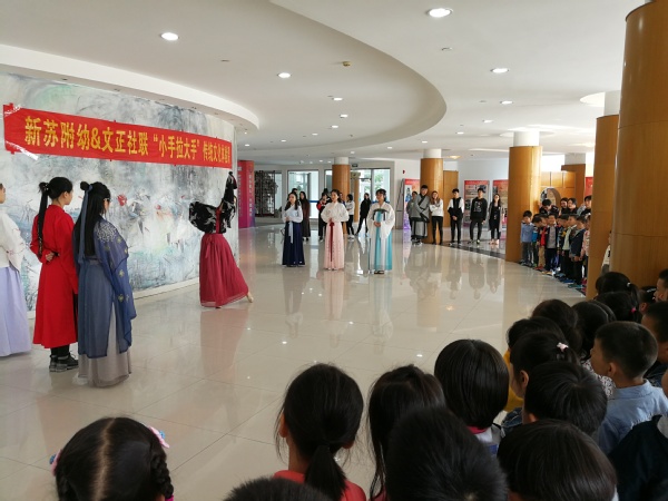 11月2日上午,来自新苏师范附属小学附设幼儿园的近九十名小朋友,在我院工会和社团联合会的精心组织下,走进我院校园、感受社团风采,共同体验了一堂内容丰富的传统文化课。