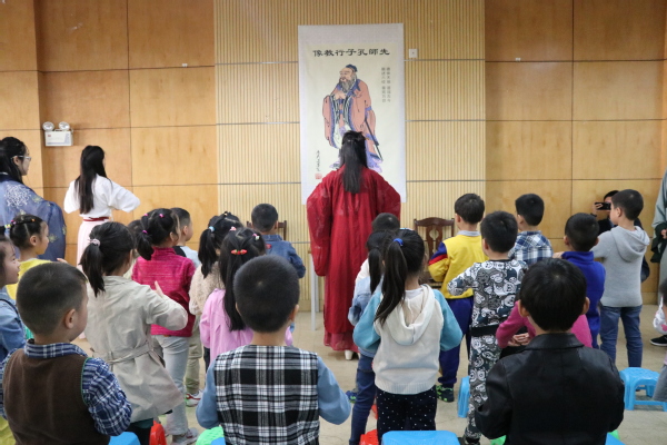 “学而时习之,不亦悦乎?有朋自远方来,不亦乐乎?人不知而不愠,不亦君子乎?”,另一边的论语小课堂上,郎朗读书声差点让大家忘记了在座的只是一群幼儿园的小儿郎。更让人惊讶的是,竟然有几位小朋友已能识得这论语第一篇《学而》中的几乎全部字词。识字会读是一方面,论语作为中华文明的瑰宝,更在于其教化人性的价值。课上同学们还试着以“斩蛟投璧”和“安贫乐道”两个论语小故事,启发小朋友们思考彼此之间相处时要互相谦让“不以力劫而以义求”,要有自己真正感兴趣的东西,不攀比不盲从。