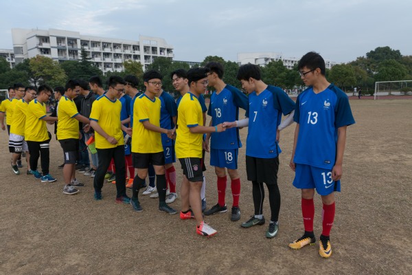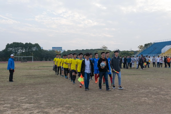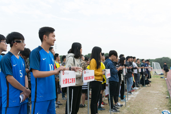 开幕式结束后,施宇先生为本次联赛开球。在首个比赛日中,计算机工程系代表队以5:3的比分战胜艺术系代表队,光电与能源工程系代表队以6:1的比分大胜法政系代表队。本次联赛设冠、亚、季军三个团体奖项,并设有最佳射手奖和最佳守门员奖,全部奖项将在明年春学期决出。