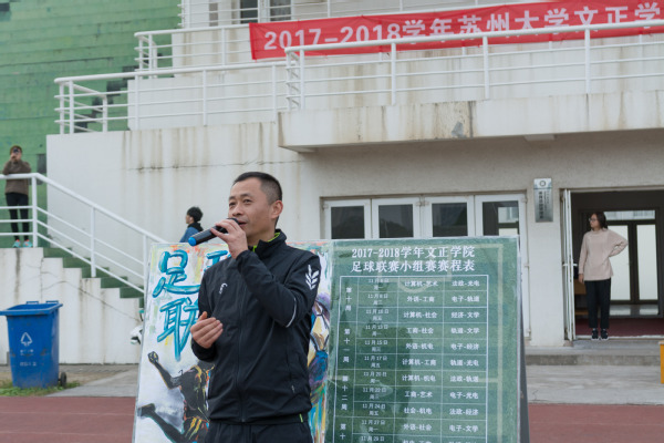 11月6日下午,2017-2018学年苏州大学文正学院足球联赛在足球场开幕,我院党委副书记、副院长袁昌兵,体育教研室主任王全法,12系科足球代表队成员以及包括裁判组在内的全体工作人员共同参与了本次仪式。苏州立德体育发展有限公司董事长施宇先生作为特邀嘉宾出席开幕式并致开幕词。