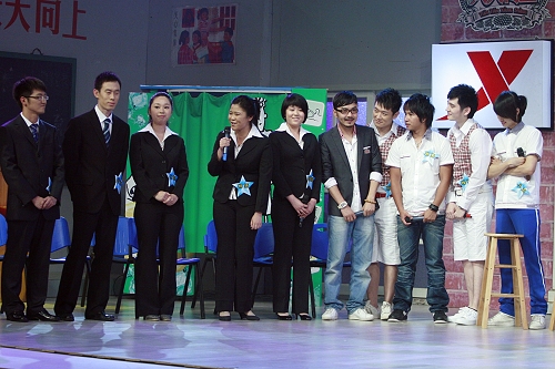 钱海(左二)作为冠军成员受邀参加湖南卫视《天天向上》栏目录制现场