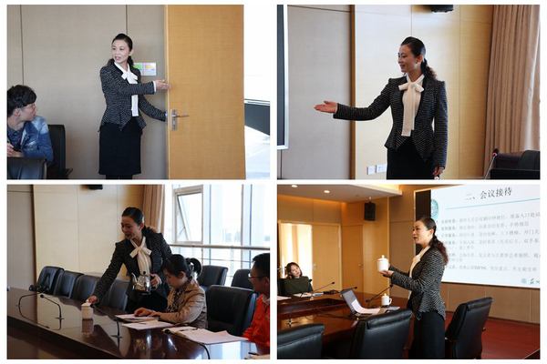 在口头教授的同时,她还采用演示模拟的教学方法,现场模拟迎宾、签到、引导、陪同、进出电梯、开门关门、斟茶倒水、递香巾,通过现场的演示,讲解每个动作的要领和注意事项,力求做到准确、严密。