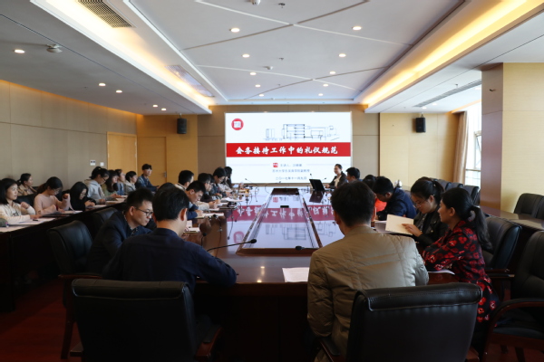 为提升学院内部管理规范化水平,强化会务接待标准化和礼仪礼节规范,11月9日下午,我院特邀苏州大学东吴商学院管理系汪晓媛副教授开展“会务接待工作中的礼仪规范”专题培训讲座。各部门负责日常会务接待安排人员以及处长(主任)助理参加此次会议,会议由院长办公室主任邢超主持。