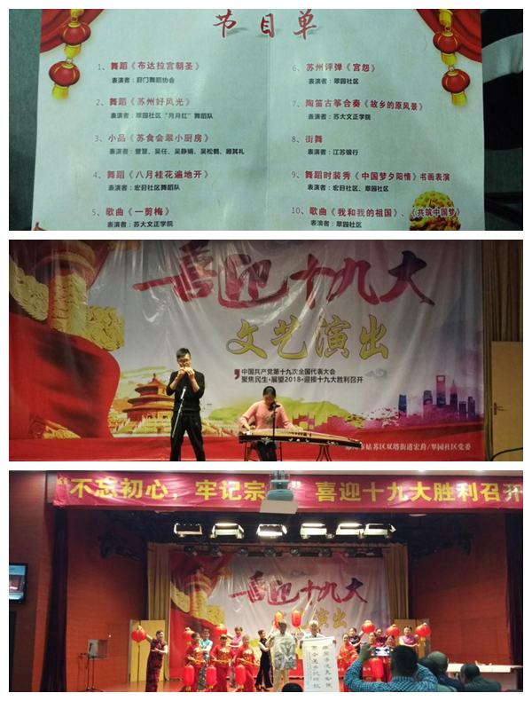 为庆祝党的十九大胜利召开,光信息能源党支部于10月17日下午在青少年活动中心,与苏州部分社区合作进行文艺汇演,颂歌献给党,礼赞新时代。