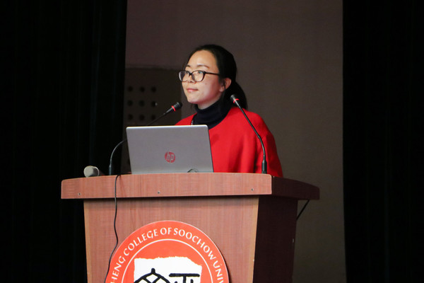 其次,何玉就2017年秋学期团学工作重点进行解读。她从“凝聚青年 强化思想引领、当好桥梁 深化实践学风、开拓创新 打造网络团建、从严治团 夯实组织建设、知行合一 引领校园文化”等五个方面回顾了在过去团学工作中取得的成绩、存在的问题,指明了今后团学工作的方向。
