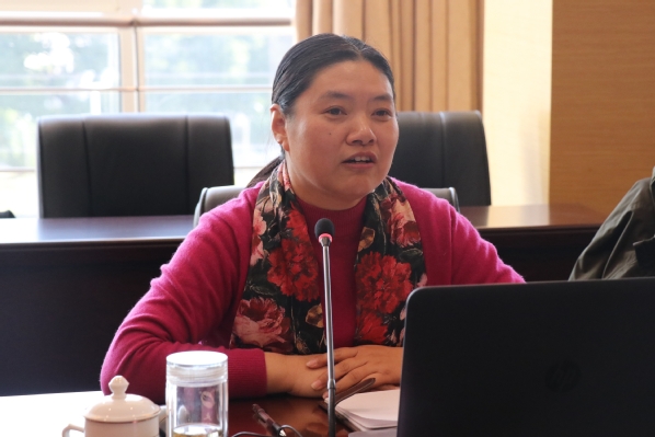 施盛威对新加盟的四位老师表示欢迎和感谢。她从学院管理运行与师资队伍这两方面介绍了学院的概况,重点从系科设置、师资构成、双聘教师情况、自聘教师情况向大家详细阐述了我院在师资队伍建设方面的情况。她表示,此次退休教师受聘仪式为我院师资队伍建设翻开了新的篇章,四位专业教师加入我院教师队伍,不仅能够丰富我院的教师结构,加强我院的专业建设,彰显我院的专业特色,更能够进一步加强我院的人才培养,提升学院的办学成效。