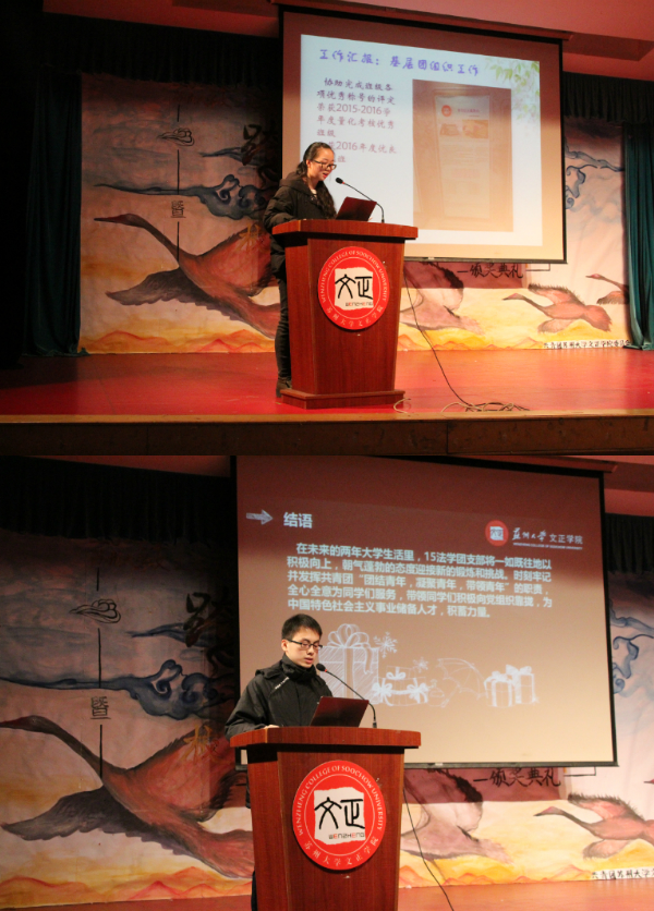 此次“校园新锐人物”评选以“魅力团支书、活力团支部”为内容展开,通过PU投票、现场答辩等环节,共有5个团支书和10个团支部荣获此称号。在晚会现场,2015级汉语言文学团支书秦佳玮和2015级法学团支书史浩成分别作为“魅力团支书”和“活力团支部”的代表与在场所有观众分享了他们的团支部,并号召更多的团支书能加入到此项活动中,为自己代言,为支部代言。