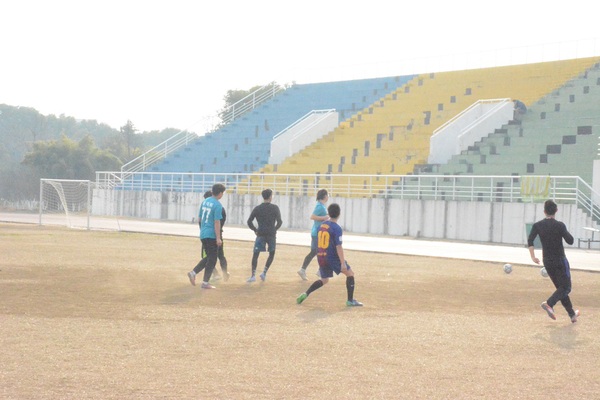 校友与学弟们进行足球比赛