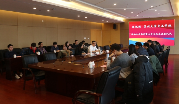12月27日下午,我院与梨视频战略合作签约暨大学生拍客进驻仪式在综合楼大会议室顺利举行。梨视频副总裁、副总编辑赵阳,江苏地区主管龚菲,我院副书记、副院长袁昌兵,学生发展中心主任王淼,学生新闻中心指导老师何玥,文学与传播系专业建设负责人吴洪兴,专业教师张思静、薛俊恺,以及学生新闻中心、梨视频拍客代表等出席活动。仪式由院长办公室主任邢超主持。