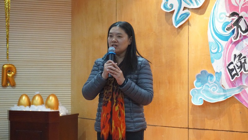 施盛威为晚会致辞。她首先代表全体教职工向同学们送上诚挚的新年祝福。接着,她总结回顾了2017年我院在教学改革、学生培养、国际交流、基础设施建设等方面取得的成绩,并对即将到来的2018年提出了新的展望。