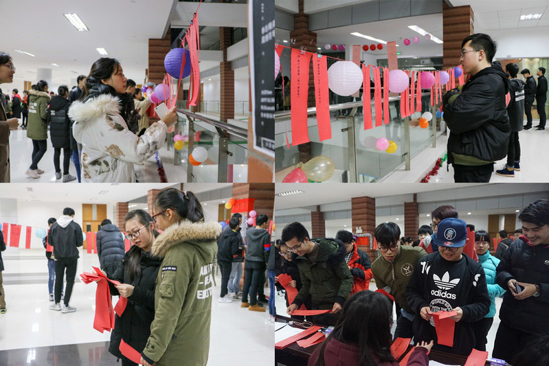 晚会开始前,活动中心二楼大厅人头涌动。灯谜区根据谜底划分成“小说人物区”“吃货区”“情感区”和“人名区”四个区域,受到了师生的一致好评,参与热情高涨。