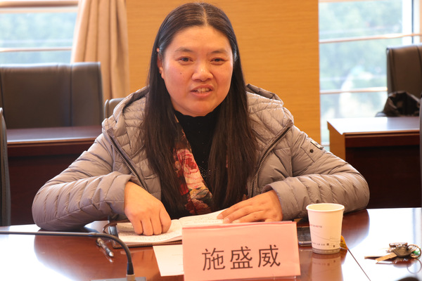 施盛威向各位代表介绍学院目前的建设发展情况,重点介绍了学院运行管理和师资队伍概况。她指出,未来与各基地的合作,在继续开展好学生实习实训的基础上,将着力落实青年教师下企业挂职锻炼的制度。同时,学院也将努力为企业做一些力所能及的服务,如在员工培训、资源共享等方面提供个性化服务,形成良性互动、发展共赢的基地共建模式。