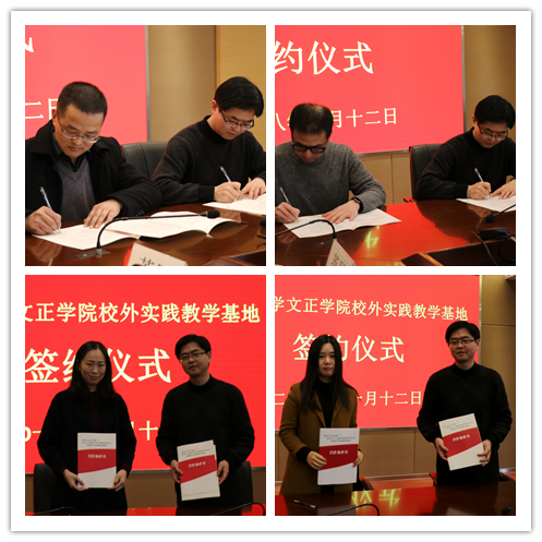 胡荣代表学院分别与四家基地代表在合作协议上签字并交换协议文本。