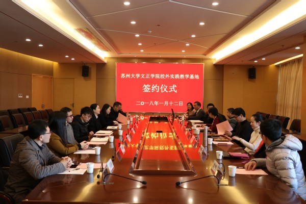 为进一步强化实践教学工作,培养高素质应用型本科人才,1月12日下午,我院成功举办校外实践教学基地签约暨兼职教师聘任仪式。苏州新锐合金工具股份有限公司、苏州工业园区贝思乐教育培训中心、苏州常青树教育咨询有限公司以及苏州艾丁心理咨询服务有限公司四家企业代表,我院副院长施盛威,教学工作部部长、教务处处长(兼)胡荣,招生就业处处长宋丹,外语系主任孙少华,社会服务系应用心理学专业建设负责人吴铁钧、专业教师代表曾研、雷鸣共同参加本次活动,仪式由实验与实习管理中心主任黄新主持。