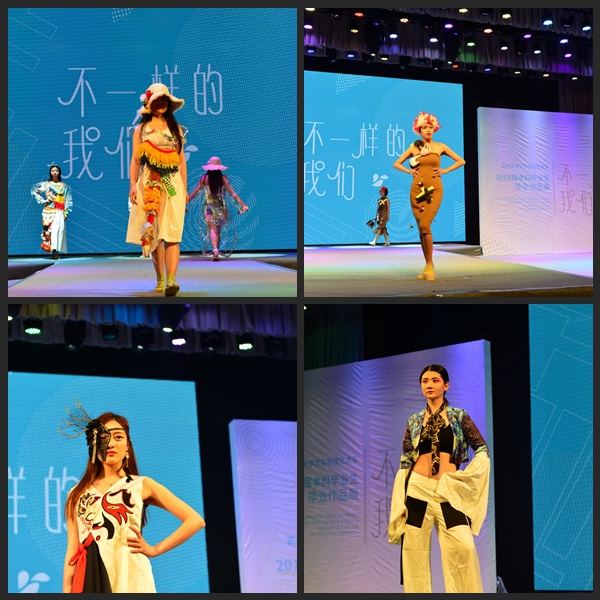 本次参展的服装共4个系列,17个主题,76套服装。整场走秀的服装,从设计、裁剪、加工到搭配,全部源于服装与服饰设计、服装设计与工程两个专业毕业生之手,走秀模特由空乘专业学生担任,美丽高挑的模特,将高端、时尚、华丽的服饰演绎的绚丽多彩,现场气氛达到高潮。