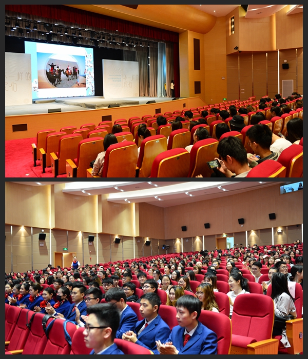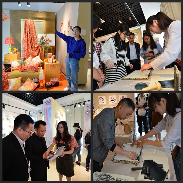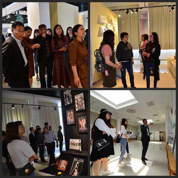 服装秀结束后,师生前往艺术中心四楼观赏毕业设计作品展。会展中心各个区域展品罗列有致、主题鲜明。参观过程中,每个展区都由设计师担任解说员,为师生们解说其中的寓意和内涵。