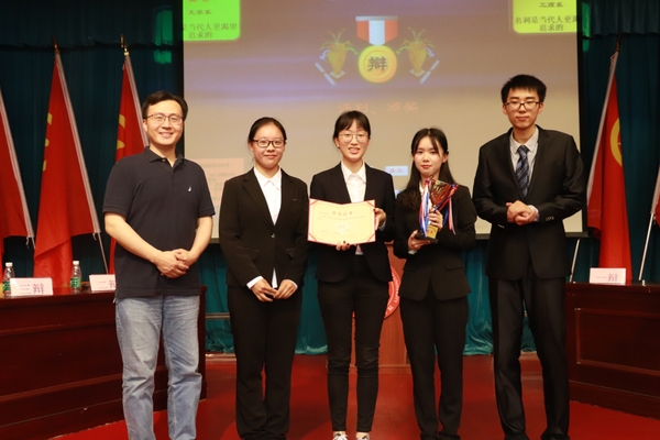决赛现场,双方围绕“‘真情’还是‘名利’是当代人更渴望的追求”展开了一番激烈的唇枪舌战。双方一辩先后用高度概括的陈述引出了己方的观点,随后的攻辩环节里,双方二、三辩互不相让,多次进行观点的交互与碰撞,双方辩手思路清晰,巧妙地结合自身与实际。自由辩论环节更是将比赛气氛推向了高潮,双方就辩题进行了更深层次的辩论。最后双方四辩分别对己方观点进行了总结,缜密的逻辑获得了场下阵阵掌声。