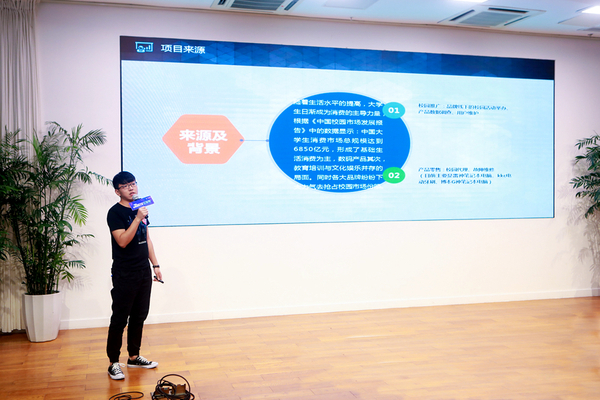 在比赛答辩环节中,苏州市中青营销顾问有限公司负责人李万里围绕公司与团队介绍、项目介绍、产品及运营方式、短期战略目标和资金流向等五个方面进行介绍。他结合市场情况指出,项目将在今后的工作中利用大数据分析用户需求,在进行线下品牌推广时,不断推出吸引客户且满足其需求的产品及服务,积极顺应互联网新时代的发展趋势。评委对该项目“用户交互”的创新理念给予高度评价,并建议其应在学校和社会组织之间搭建通道,充分考虑后续延展性,保证项目可持续发展。