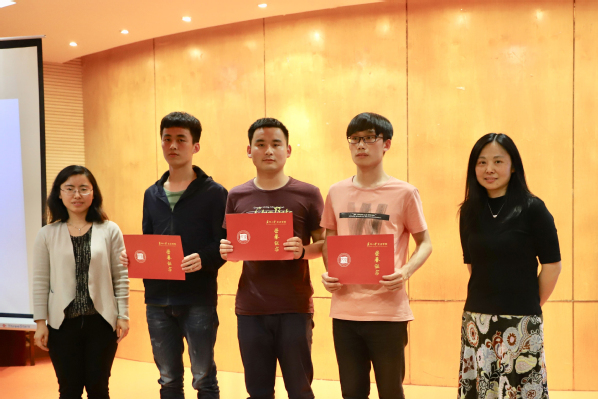 邹丽新宣读了获奖名单。16电气工程与智能控制潘辉、15微电子科学与工程胡晓宇、15电气工程与智能控制徐玉震等三位同学荣获一等奖。