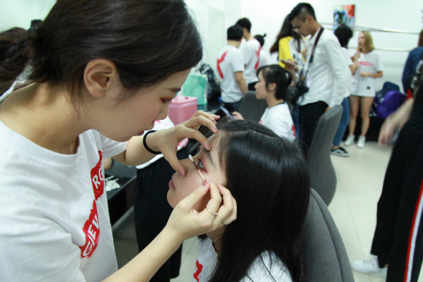 学生在后台化妆准备