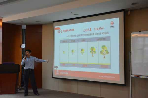 蔡毅良从“我们是谁”“我们能做什么”“我们已经做了哪些”“有效传播,创客不再孤单”“传播预算方案”等方面介绍了金枫创客服务体系及其平台优势。他表示,金枫集团利用自身资源为处于不同阶段的创业者提供所需帮助,扶持初创企业成长。