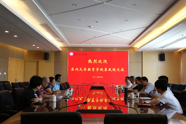 吴昌政对来访嘉宾表示热烈欢迎,对教育学院一直以来在双方专业和师资共建等方面给予的高度重视和大力支持表示衷心感谢。目前独立学院的建设和发展方向逐渐明晰,其成功转型将成为推动我国高等教育事业改革的一股不可忽视的重要力量。文正学院的转型发展将继续坚持“三个有利于”,即有利于苏州大学发展、有利于文正学院发展、有利于文正师生发展,将继续依托各共建学院的支持和帮助。