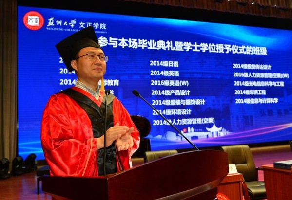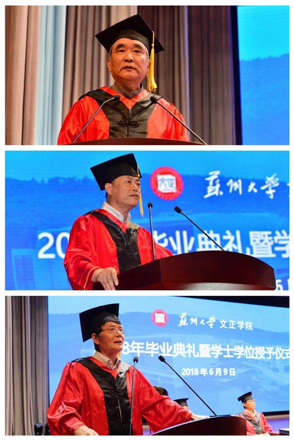 先后参加本次授予仪式的学位评定委员会委员还有苏州大学文正学院院长吴昌政教授,苏州大学文正学院院长助理、教学工作部部长(兼)胡荣,苏州大学外国语学院院长朱新福教授,苏州大学教育学院院长冯成志教授,苏州大学东吴商学院副院长袁建新教授,苏州大学艺术学院副院长王泽猛副教授,苏州大学文正学院文学与传播系主任陈桂生教授,苏州大学文正学院艺术系主任马路教授,苏州大学文正学院外语系主任孙少华老师,苏州大学文正学院党委书记仲宏副教授,苏州大学文正学院副书记、副院长袁昌兵副教授,苏州大学文正学院社会服务系主任张明教授,苏州大学文正学院经济系主任孙文基教授,苏州大学文正学院工商管理系主任李晓峰教授,苏州大学轨道交通学院院长朱忠奎教授,苏州大学电子信息学院院长胡剑凌教授、苏州大学物理科学与技术学院院长高雷教授,苏州大学文正学院光电与能源工程系系主任邹丽新教授,苏州大学文正学院轨道交通工程系系主任姚林泉教授,苏州大学文正学院机电工程系系主任钱志良教授,苏州大学文正学院电子信息工程系系主任陈蕾副教授等。学院相关职能部门的负责人、毕业班班主任老师、部分毕业班学生家长也参加了本次典礼。