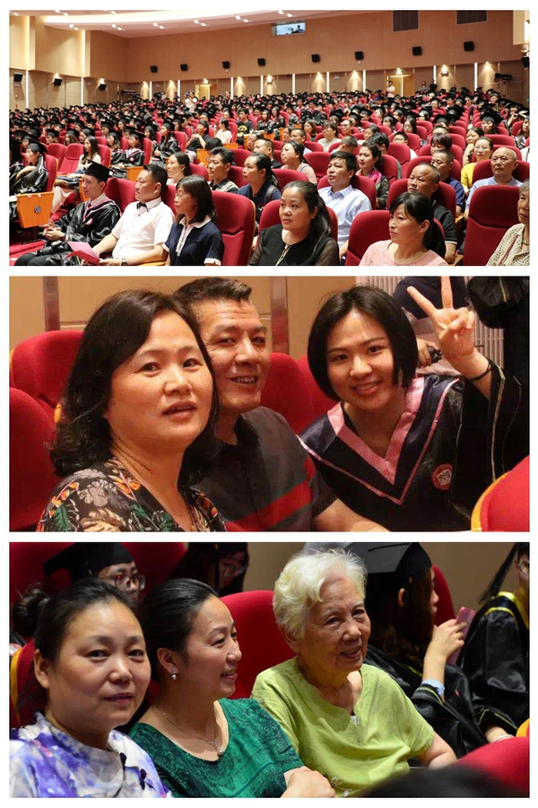 学院还专门在前排区域为一同前来的家长辟出观礼区, 2014级新闻学专业芦艺学生的家长芦康源、2014级城市管理专业学生沙兆澍家长沙少敏、2014级电气工程(中外合作)专业学生刘稼唯的家长刘毅作为家长代表发言。与以往不同的是,除了设置了家长代表发言环节,今年也新增了教师代表发言环节,我院艺术系主任马路教授、社会服务系主任张明教授、光电与能源工程系系主任邹丽新教授分别给毕业生赠言。