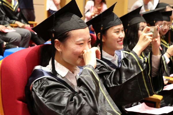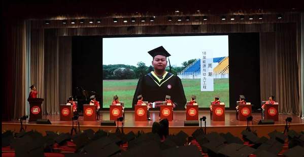 本次学位授予仪式还设置了特别环节为赵琳琳、沙兆澍、周潮这三位“特殊”的学生授予学位。赵琳琳身残志坚,通过自己的刻苦与认真,以平均绩点3.5分顺利毕业;沙兆澍三年来在毕业典礼上为毕业的学姐学长弹奏钢琴,今年的他为自己弹奏;周潮从学院拔河队起步,通过刻苦训练,被中国大学生体育协会橄榄球分会选中,代表中国队参加即将举行的2018届世界大学生美式橄榄球锦标赛。他们的身上集中体现了“自强、博学、弘毅、拓新”的文正院训精神。