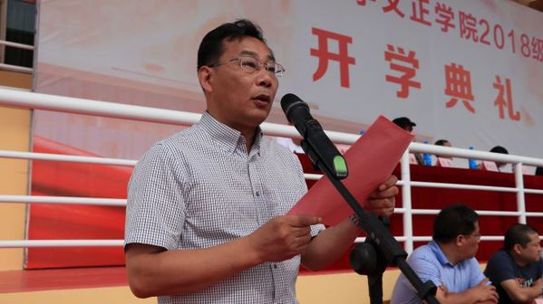 法政系主任上官丕亮作为教师代表发言,他的发言慷慨激昂,让在场的师生印象深刻。他希望大家能够“今天你以文正学院为荣,明天文正学院以你为荣”,并且给新同学们提出了四点期望和要求:树立新志,发奋学习;学好专业,多多读书;少玩手机,不要作弊;培养习惯,乐观向上。