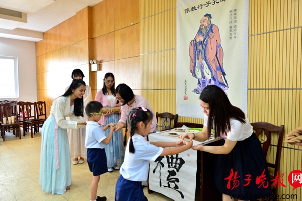 9月28日是孔子诞辰2569年的日子。今天(9月27日),新苏师范附小幼儿园大班的六十余位小朋友走进苏州大学文正学院,在大学生们的带领下一起体验传统文化、感受国粹精髓,以这样一种特殊的方式向先贤致敬。