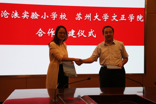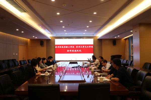 10月12日下午,我院与苏州沧浪实验小学校合作共建仪式在综合楼大会议室举行。沧实小校长汤岚、书记沈巍、副校长朱云逸、教导主任宋婷婷、工会主席马红霞,我院院长吴昌政,院党委书记仲宏,副院长施盛威,副院长蒋峰,副书记、副院长袁昌兵,纪检专员、党委办公室主任(兼)、工会主席杜明,院长办公室主任邢超等出席活动。