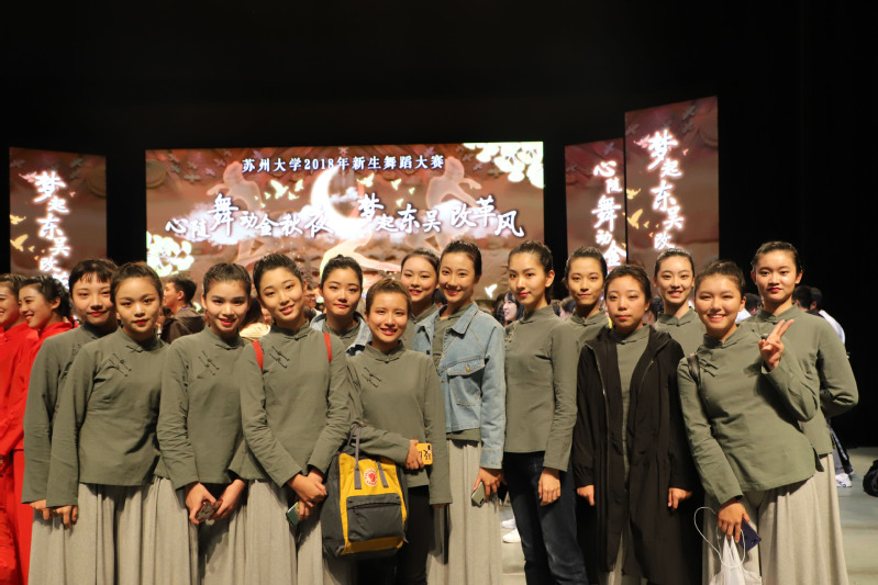 10月14日晚,苏州大学2018年新生舞蹈大赛在独墅湖影剧院如期举行。为了纪念改革开放四十周年、牢记改革开放的初心,本届新生舞蹈大赛以“心随舞动金秋夜,梦起东吴改革风”为主题,展现了新一代大学生们建设祖国壮阔未来的雄心,我院艺术团舞蹈团的参赛作品《等你来》荣获三等奖。苏州大学招生就业处处长查佐明、团委书记肖甫青,以及来自25个学院(部)的负责老师出席了本次大赛。