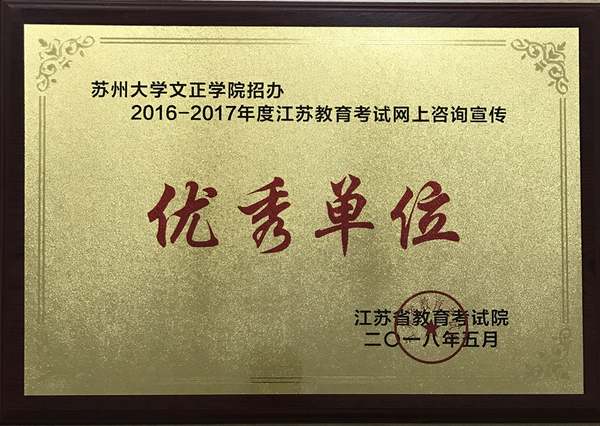 近日,江苏省教育考试院印发《关于公布2016-2017年度江苏省教育考试网上咨询宣传优秀单位评比结果的通知》文件,表彰全省20所高校招办,我院招生就业处荣获“网上咨询宣传优秀单位”荣誉称号。