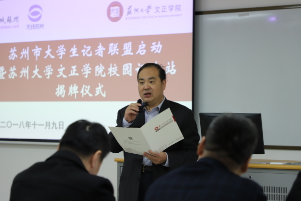 11月9号下午,苏州市大学生记者联盟启动暨苏州大学文正学院校园记者站授牌仪式在我院举行。这标志着我院与名城苏州的合作进入了崭新阶段。