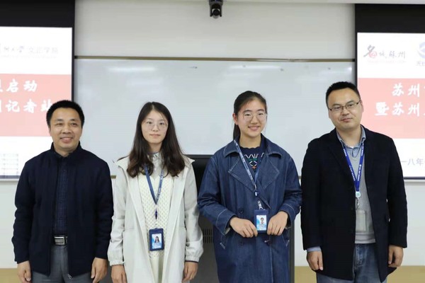 参加活动的还有名城苏州网鞠静静,以及我院院长办公室主任、新闻中心主任(兼)邢超,学生发展中心主任王淼,新媒体工作室指导老师祝仁涛,学生新闻中心指导老师何玥,文学与传播系专业教师陈爽、刘昱希以及新媒体工作室、学生新闻中心和部分新闻专业的同学。仪式由院长办公室潘梦琦老师主持。