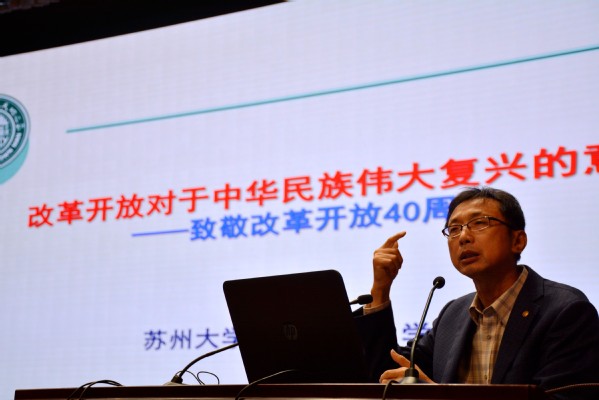2018年11月27日晚,本学期第二轮第二讲《形势与政策》课在综合楼多功能厅开讲。我院邀请到苏州大学马克思主义学院党委书记张才君教授作为主讲教师,给800多名师生作了《改革开放对于中华民族伟大复兴的意义——致敬改革开放40周年》的讲座。本次讲座由院党委书记仲宏主持。