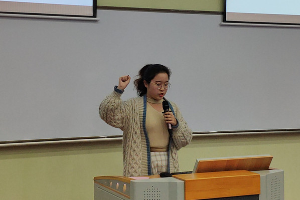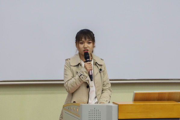 团委办公室主任匡珈磊代表学生干部发言。她从一年级参加“团校培训——学长宣讲团”的经历讲起,讲述了自己近两年半以来作为学生干部所收获的成果。最后,她结合自己实际经历从“提升综合素质”“学会与人交流”“真诚待人处事”“学会思考踏实做事”等四个方面分享了对如何做好一名学生干部的思考。