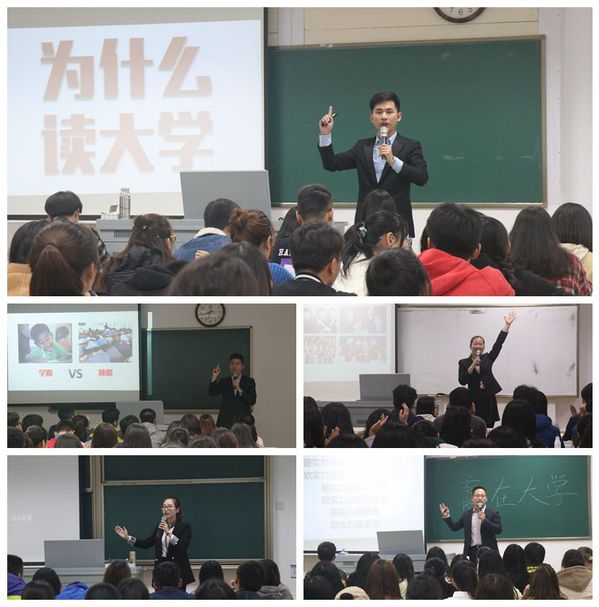 讲师们通过与同学们分享“大学那些事儿”,立刻拉近了与同学们的距离,现场气氛十分活跃。随后,杨欢讲师特别提到“舒适圈定律”,每个人的舒适圈是不同的,有的大,有的小,但往往精彩的故事是在舒适圈外。她鼓励同学们:“每一个人都要敢于逃离舒适圈,突破自己。”