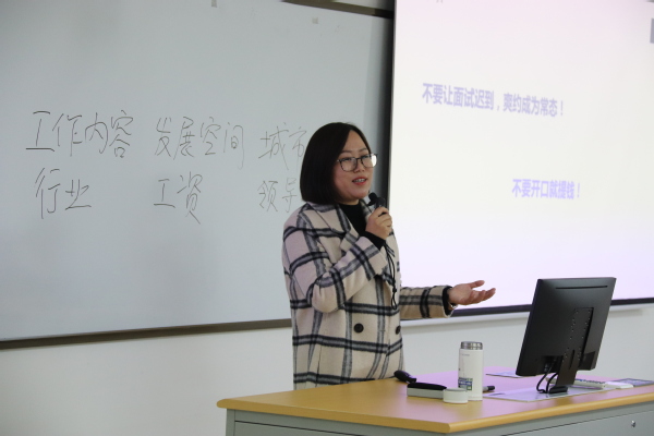 讲座上,朱晓颖提出投递简历前需要综合考虑多方面的因素,例如职位的发展空间、企业文化、员工待遇、老板性格等。在了解完全后,能对求职岗位有更深层次的看法,在面试中也能更好地回答面试官提出的问题。