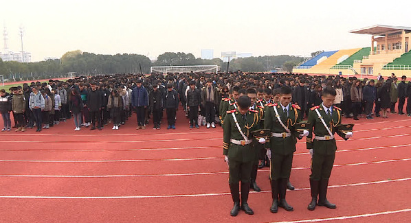随后降半旗,全体师生向南京大屠杀死难者默哀1分钟。公开课上,全体学生还进行了宣誓。大家表示,要勿忘国耻、振兴中华。