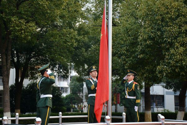 上午7:30,由退伍大学生组成的文正国旗护卫队整齐划一、口号嘹亮的走向旗杆。在庄严的国歌声中,五星红旗冉冉升起,在场师生行注目礼。为纪念在南京大屠杀中遇难的同胞和革命先烈,降半旗并默哀一分钟。