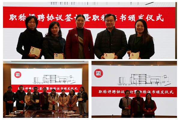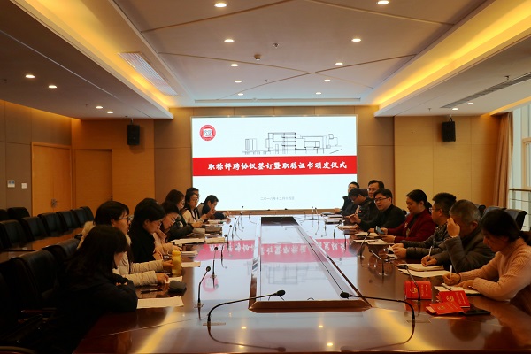 12月14日,我院在综合楼大会议室举行职称评聘协议签订暨职称证书颁发仪式。副院长施盛威、人事处处长周文军、教师发展中心主任凌亦青、人事处成剑慧老师以及2018年职称评审通过人员参加了本次仪式,仪式由院长助理胡荣主持。