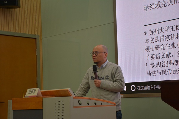 讲堂上,方新军通过通俗易懂的类比论述了民法典编纂过程中应用融贯的必要性,阐述了外在体系和内在体系二者的应用及其相互关系,提出了法律原则隐藏在规则中的观点。随后,方新军又具体讲述了融贯的标准和原则,分别从证立结构特征、概念特征和对象域特征三个方面进行了系统地剖析,着重突出原则需要层次划分、价值需要排序的重要性。