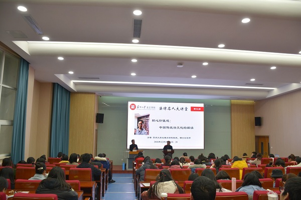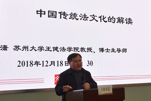 12月18日晚,由我院法政系主办的“法律名人大讲堂”第三讲在教学楼3-101成功举办。本次大讲堂邀请了苏州大学王健法学院教授、博士生导师方潇作为主讲嘉宾,讲座主题为“核心价值观:中国传统法文化的解读”。我院法政系主任上官丕亮、团学指导老师吉顺权出席,大讲堂由上官丕亮主持。